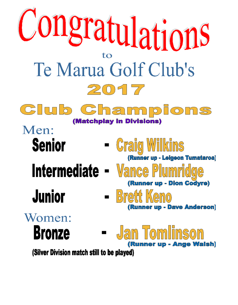 The Te Marua Golf Club extends its thanks the Tournament’s sponsors, its supporters and all the competitors, who together helped make the 2015 Te Marua Masters a resounding success.