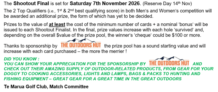 Te Marua Golf Club’s Weekend Shootout 2026 Share this: Click to share on X (Opens in new window) X Click to share on Facebook (Opens in new window) Facebook